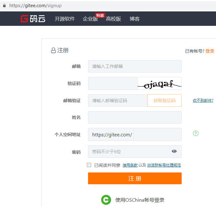 3.3 点击网站右上角“登录”,登录码云,并进行账号设置