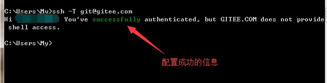 3.6 测试公钥:打开终端,输入命令 ssh -T git@gitee.com