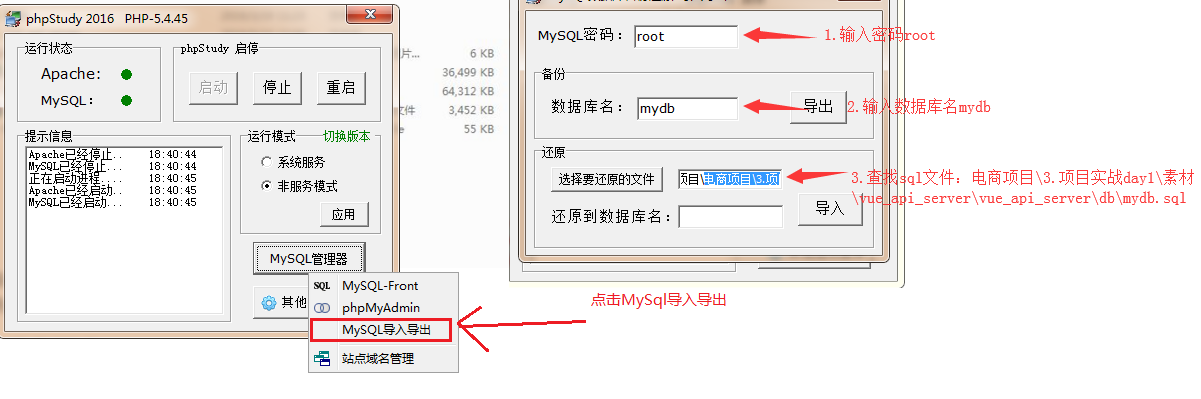 4.配置后台项目 4.1 安装phpStudy并导入mysql数据库数据