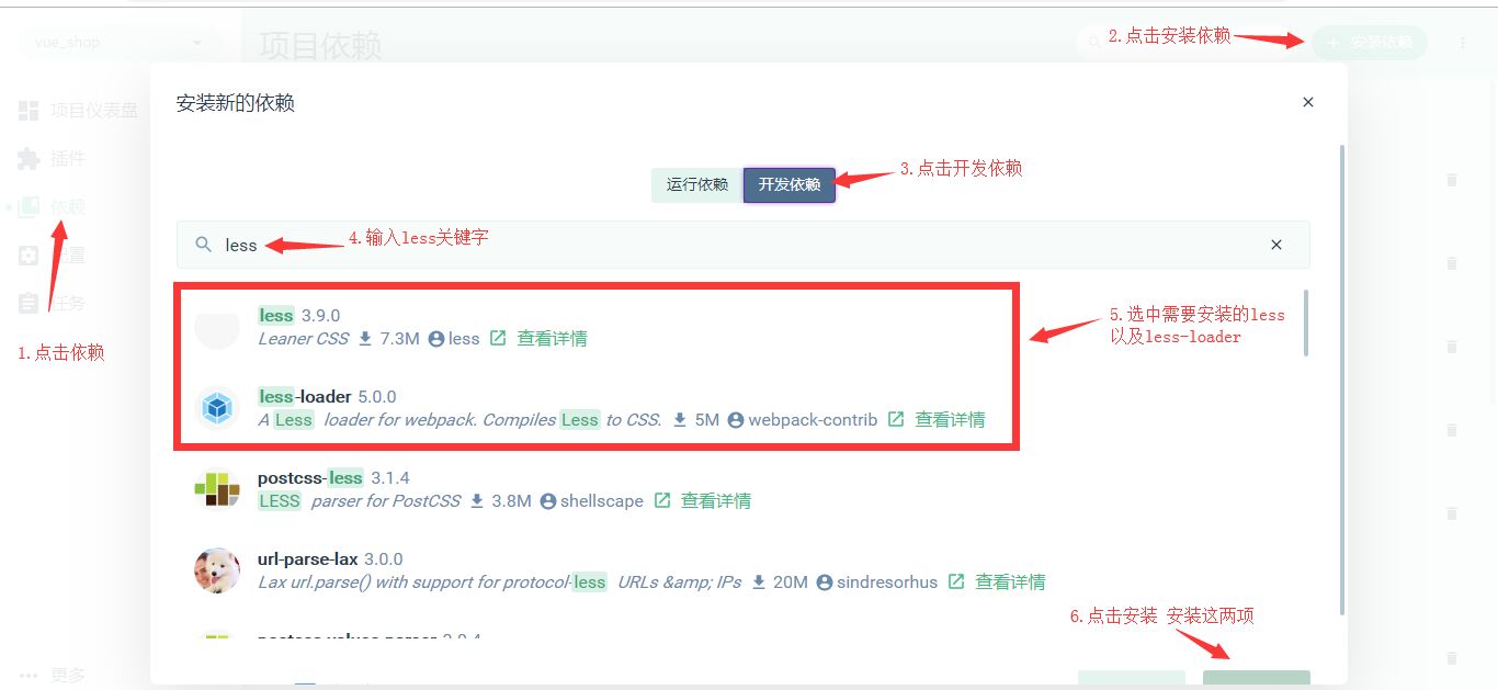 15.8 路由懒加载 当路由被访问时才加载对应的路由文件,就是路由懒加载。 路由懒加载实现步骤: 1.安装 @babel/plugin-syntax-dynamic-import 打开vue控制台,点击依赖->安装依赖->开发依赖->搜索@babel/plugin-syntax-dynamic-import 点击安装。